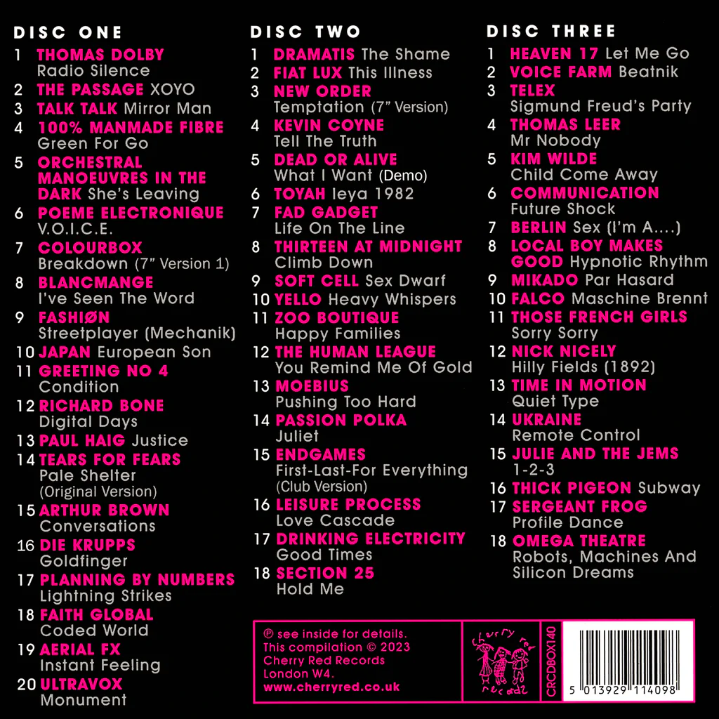 #ThomasDolby   #ThePassage   #TalkTalk   #100%ManmadeFibre   #OrchestralManoeuvresInTheDark (O.M.D.)   #PoemeElectronique   #Colourbox   #Blancmange   #Fashiøn   #Japan   #GreetingNo4   #RichardBone   #PaulHaig   #TearsForFears   #ArthurBrown   #DieKrupps   #PlanningByNumbers   #FaithGlobal   #AerialFX   #Ultravox   #Dramatis   #FiatLux   #NewOrder   #KevinCoyne   #DeadOrAlive   #Toyah   #FadGadget   #ThirteenAtMidnight   #SoftCell   #Yello   #ZooBoutique   #TheHumanLeague   #Moebius   #PassionPolka   #Endgames   #LeisureProcess   #DrinkingElectricity   #Section25   #Heaven17   #VoiceFarm   #Telex   #ThomasLeer   #KimWilde   #Communication   #Berlin   #LocalBoyMakesGood   #Mikado   #Falco   #ThoseFrenchGirls   #NickNicely   #TimeInMotion   #Ukraine   #JulieAndTheJems   #ThickPigeon   #SergeantFrog   #OmegaTheatre